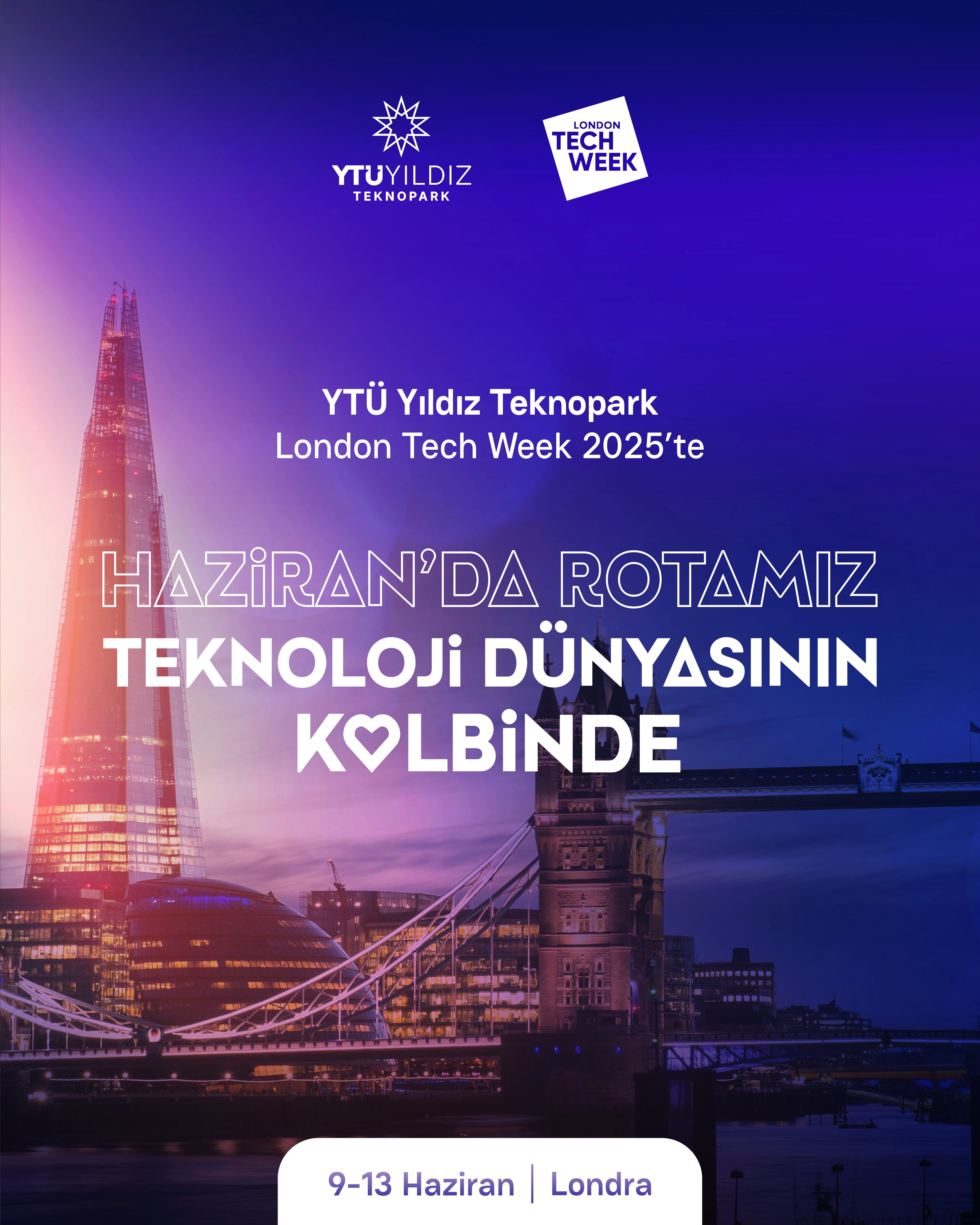 YTÜ Yıldız Teknopark olarak, 9–13 Haziran 2025 tarihlerinde düzenlenecek London Tech Week 2025’te yerimizi alıyoruz.